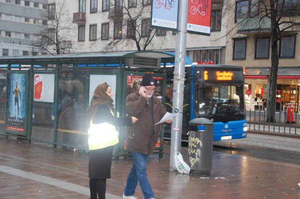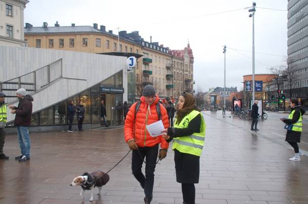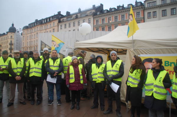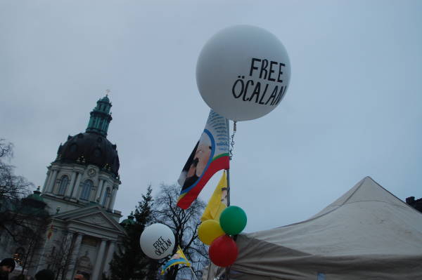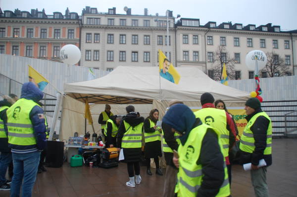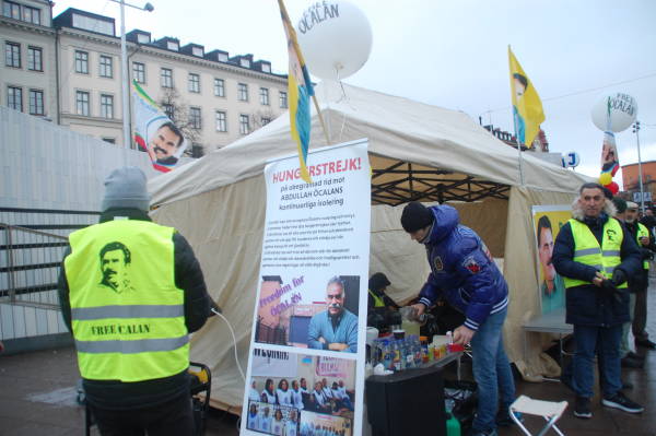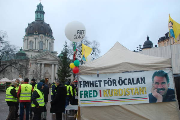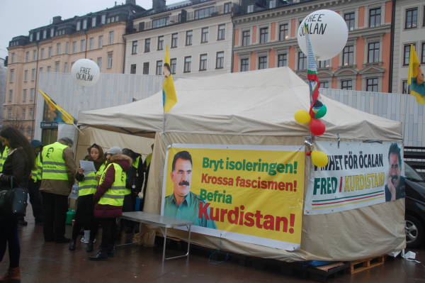 Kurds put up a tent in the Odenplan Square yesterday and held a demonstration in the square to condemn the Turkish state’s attacks against Öcalan. The activists passed out flyers to inform the public of the isolation of Öcalan.