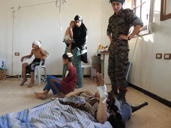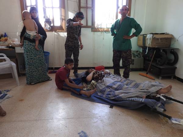 The fighters of the Syrian Democratic Forces took a five-person family they freed from the ISIS gangs to the medical check point. Due to a mine explosion they suffered heavy injuries from head to toe. At the medical checkpoint for administering first aid, the medics applied all efforts they could muster but the medical equipment and the medicine at hand were far off from covering the necessary requirements. Raqqa has witnessed such a happening, that could fill the pages of history. The doctor actually needed to narcotize a baby, who was whimpering in pain, but the anaesthesia that was left was not even enough for the mother.
