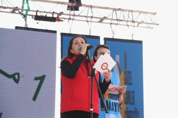 Çerkezoğlu added: "This Labor Day is going to be remembered as day millions said No. Amon those who say No to this system are: intellectuals, journalists and politicians... We say No to the capitalist powers that take over the country. We are not alone. We are the real owners of this country. We will not leave this beautiful homeland in the hands of a dictator”.