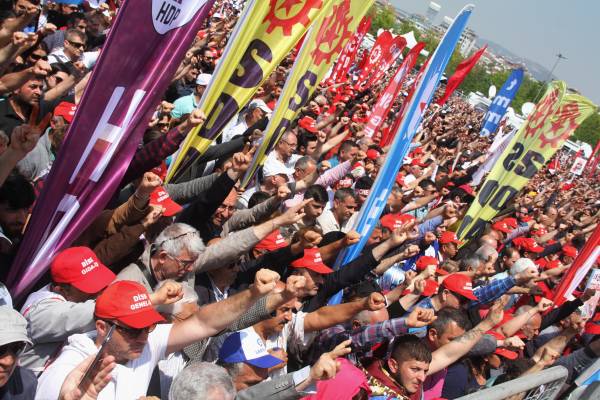 DISK General Secretary, Arzu Çerkezoğlu said: “We are here celebrating Labor Day, before a regime change. This is an appeal to the people exploited and oppressed by this regime around Turkey. This is the photograph of the struggle we will carry on until 24 June and beyond. In a country where all words are spoken by only one mouth, workers are the main victims. Workers will stop Recep Tayyip Erdogan ”.