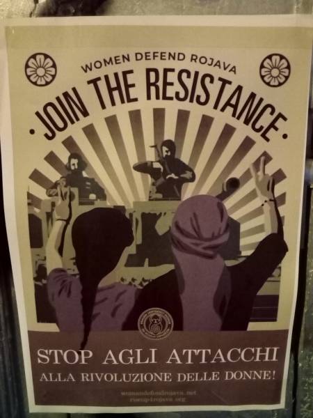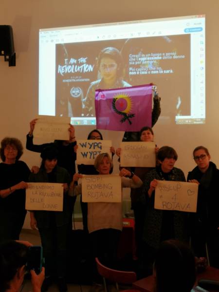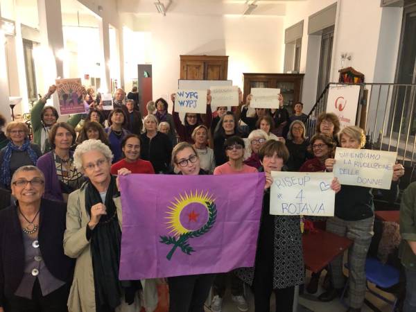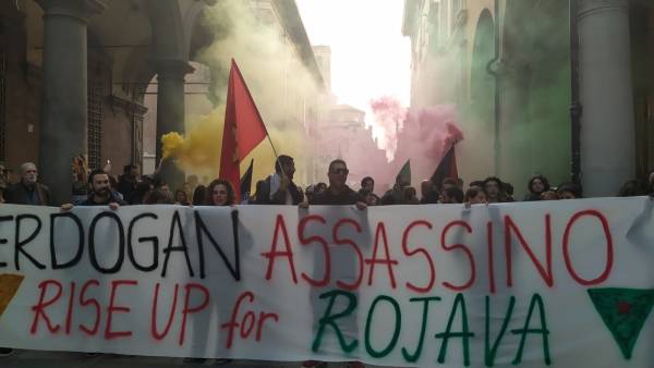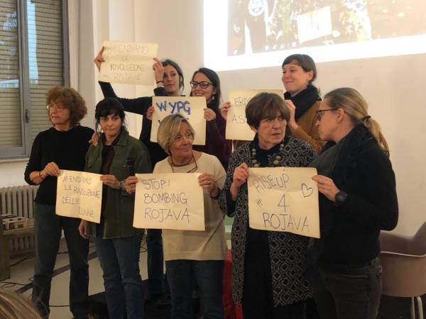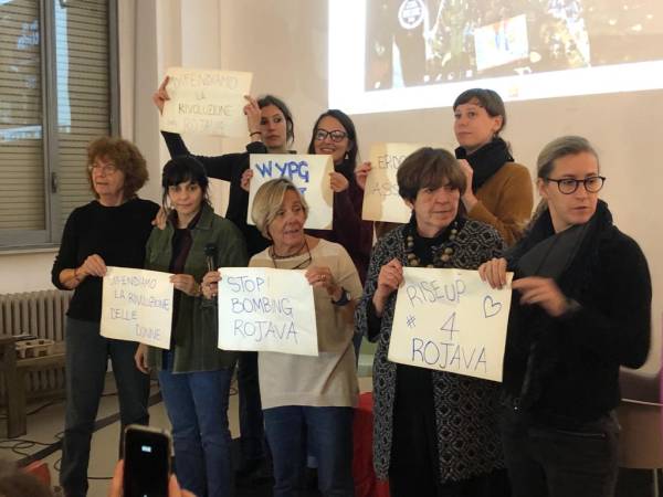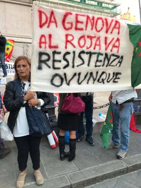 Various movements, organizations and individuals declared solidarity for the people of Rojava and their radical democratic project, among them the feminist network of Non Una Di Meno, CISDA (Italian Coordination for the Support of Afghan Women), the National Association of Democratic Jurists, the political party of PAP (Potere al popolo), the Women's international league for peace and freedom (WILPF), the Feminist Proletarian Revolutionary Movement (Movimento femminista proletario rivoluzionario), the Anagrafe Nazionale Antifascista and many more. The family of Lorenzo Orsetti, who recently fell martyr of the Rojava revolution, also wrote a letter to the public, calling for the people of Italy to defend what their son and brother had fought and died for.