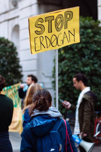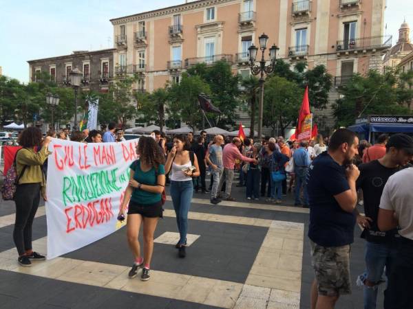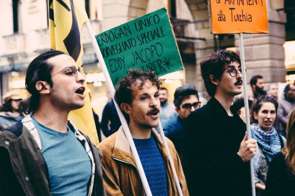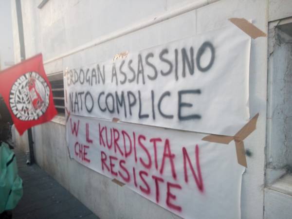 In Rome, Florence and Milan, hundreds of people protested in front of the Turkish and U.S. embassies.