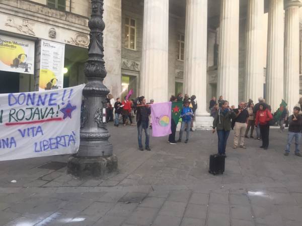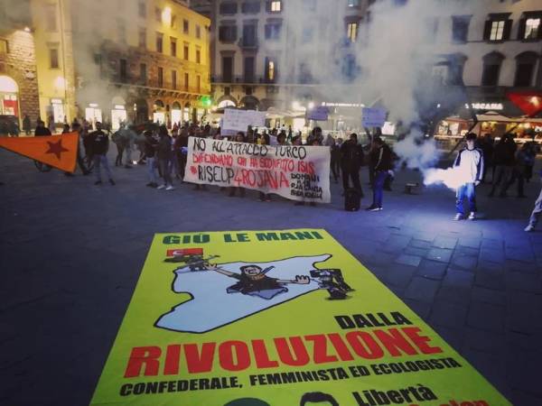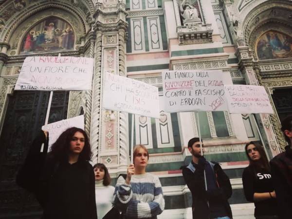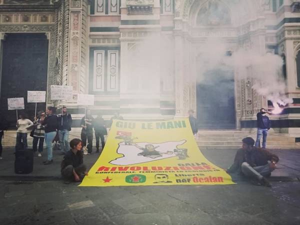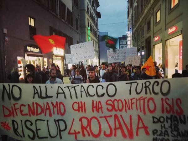 In Florence, activists blocked a bridge and the traffic for at least one hour to call attention to the attacks on Rojava. On Saturday, the entry to the Uffizi museum of Florence was blocked in solidarity with Rojava.