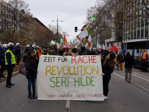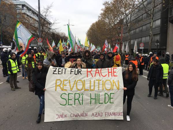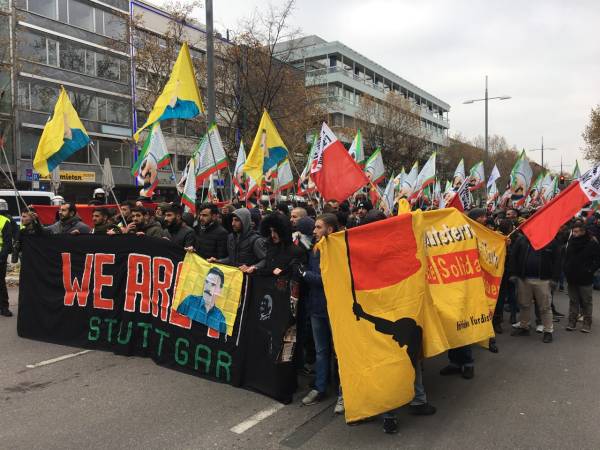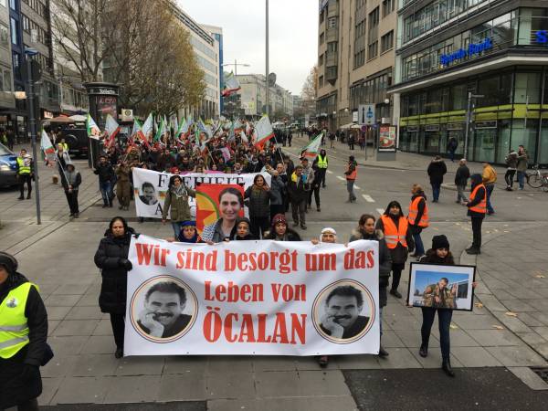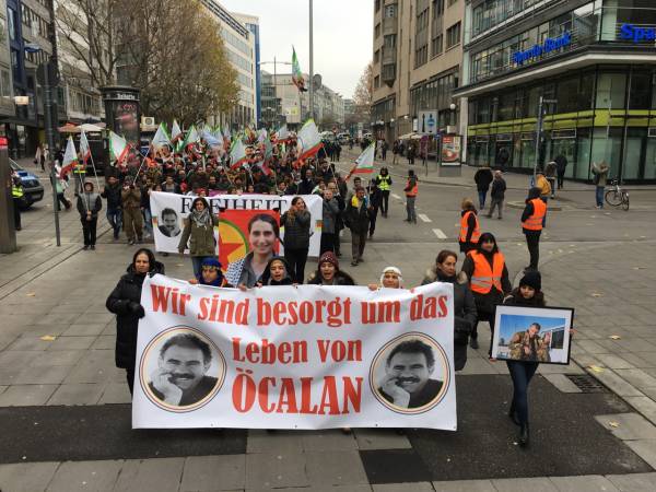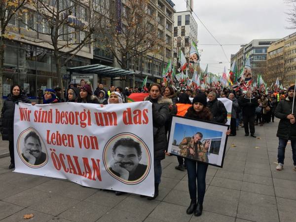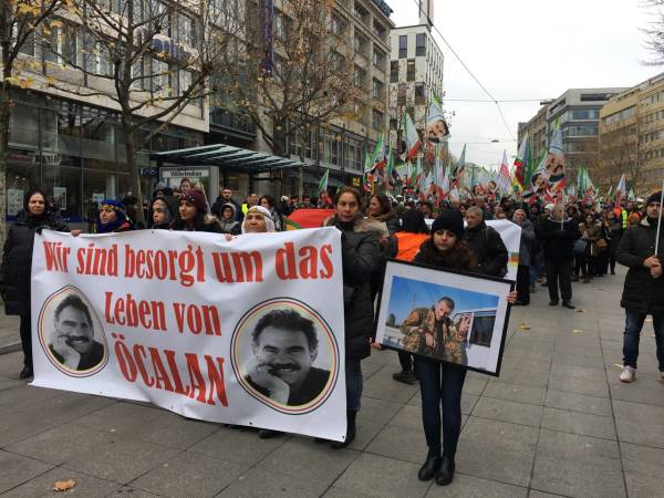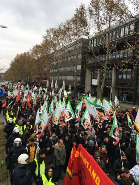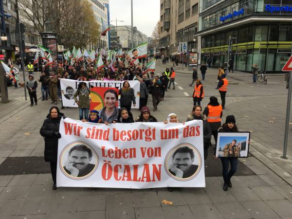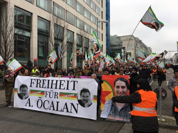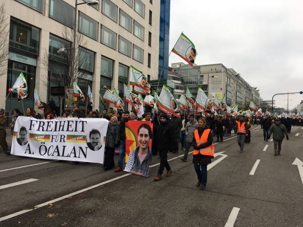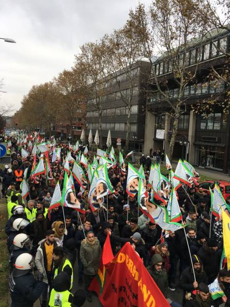 Thousands from Germany, Belgium, Switzerland, the Netherlands and France joined the march that kicked off in front of the Central Train Station at 12:00 Saturday noon. Democratic Kurdish Society Center in Germany (NAV-DEM), European Kurdish Democratic Society Congress (KCDK-E) and German Left Party also supported the demonstration.