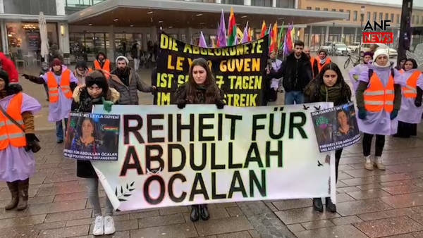 A minute's silence was observed for the martyrs of the Kurdish liberation movement before the march kicked off in front of Hildesheim train station. Unfurling a banner in German, which read "Freedom for Öcalan, status for Kurdistan", the activists started the march with posters of Leyla Güven in their hands, accompanied by music and slogans.