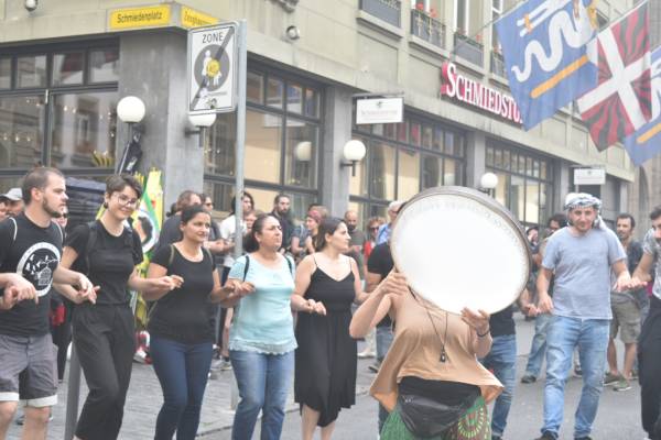 In Bern, capital city of Switzerland, thousands attended a demonstration organised by Revolutionary Youth’s Union (YCS) at Reitschule Square. The mass then marched to the Hinten dem Kornhaus area.