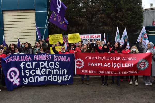 Even after the police attack, the resistance at Farplas continues. The Feminist Anti-Poverty Uprising Campaign Group paid a solidarity visit to the struggling workers in Kocaeli on Tuesday. The women's delegation, including HDP deputies Züleyha Gülüm and Oya Ersoy, arrived in front of the factory with a banner reading “We stand by the Farplas workers” and were greeted with applause.