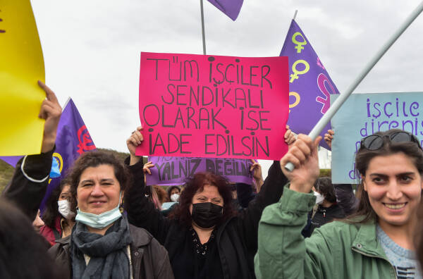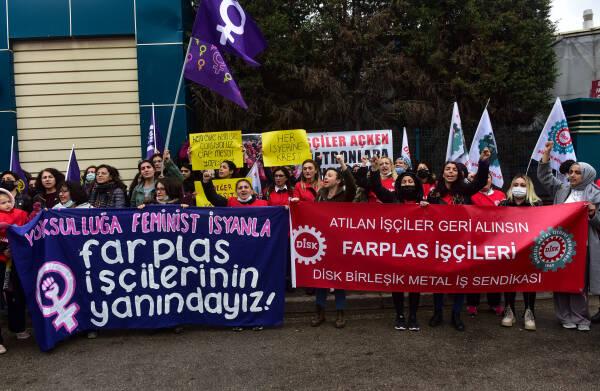 Women workers at Farplas factory in Kocaeli on strike for trade union rights and wage increases