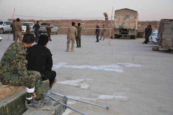 ANF met 25 years old Ali Serêkaniyê in a YPG position in Deir ez-Zor. He stands out with the cast on his leg and his crutches. When we went to talk to him, I learned that he was wounded in the operation in Raqqa city center. He went to Qamishlo to receive treatment, but couldn’t leave the front behind despite his friends insisting. With every incoming group, he visits his friends.