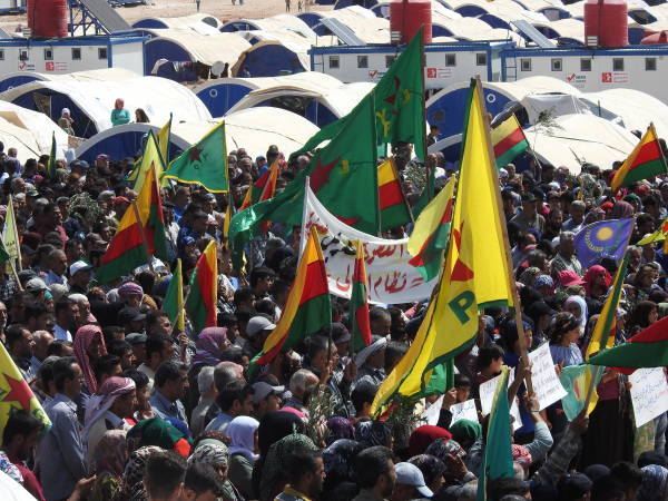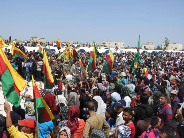 #Shehba the region that received thousands of refugees from #Afrin, today is demonstrating the Turkish occupation on the Global Action Day for Afrin.pic.twitter.com/iL0BDKlSV1