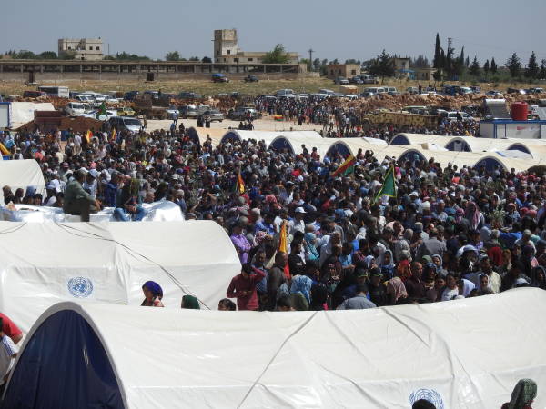 Displaced people of Afrin who are staying in Berxwedan refugee camp in Shehba Canton gathered today and protested the Turkish state’s acts of invasion in Rojava and Kurdistan.