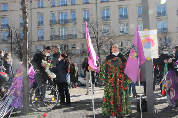 Speakers saluted “all the Kurdish women who exist and struggle in Rojava, Shengal, prisons and everywhere” and reiterated their demand for justice for Kurdish revolutionaries Sakine Cansız, Fidan Doğan and Leyla Şaylemez who were killed by Turkish intelligence service in January 2013.
