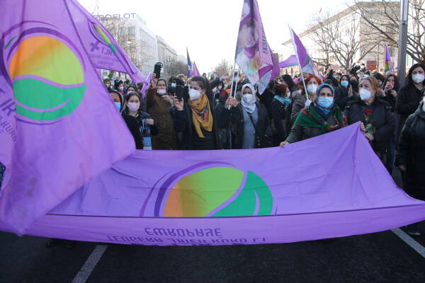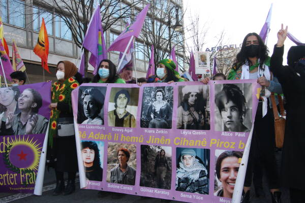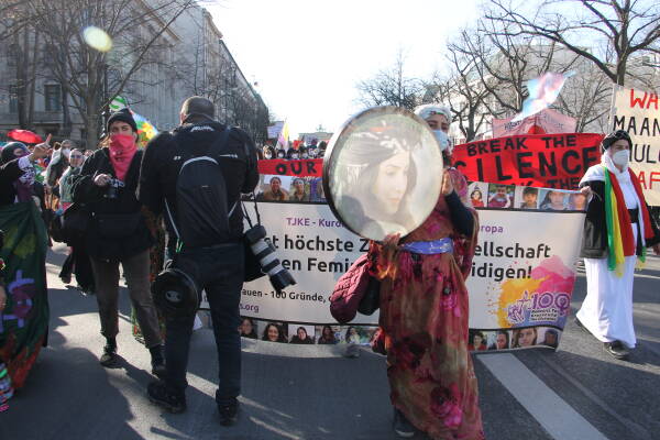 In Berlin, a demonstration of the "Alliance of Internationalist Feminists" took place on the occasion of the Women's Day under the slogan "Our life, our resistance, break the silence and the system!” The alliance consists of various groups, networks and individuals who come together on key days such as March 8 and the International Day for the Elimination of Violence Against Women on November 25 to take their political demands and struggles to the streets. The Kurdish Women's Movement in Europe (TJK-E) had also called for participation.