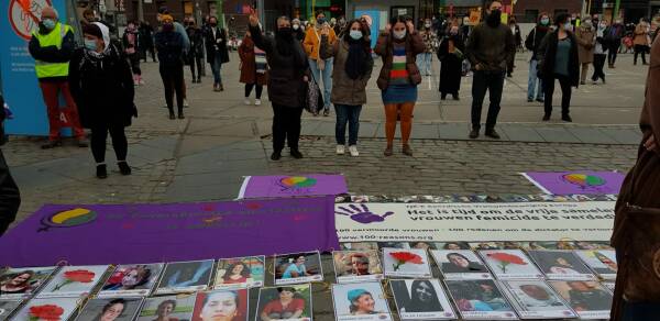 The Kurdish women's bloc led by the Dest-Dan Women's Council presented the campaign "100 Reasons to Prosecute the Dictator" initiated by TJK-E at the demonstration. A petition launched for this purpose on November 25 aims to have Turkish President Recep Tayyip Erdoğan indicted before the UN as responsible for the Turkish regime's misogynistic policies and to have feminicides recognized internationally as crimes against humanity.