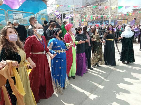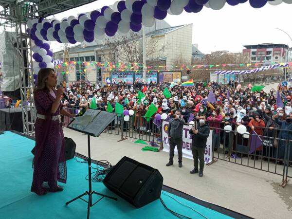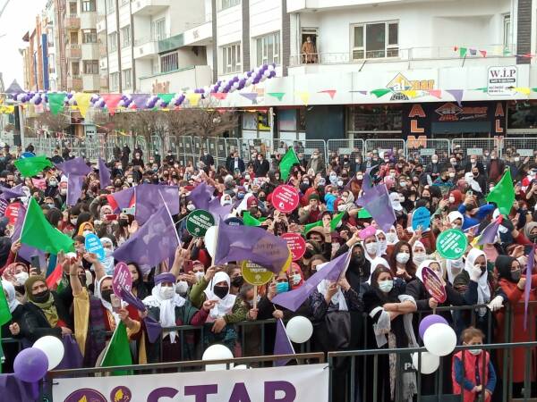The rally started with a minute's silence in memory of women who lost their lives in the struggle for democracy. HDP provincial co-chair Handan Karakoyun, Democratic Regions Party (DBP) provincial co-chair Gülderen Varlı and Star Women's Association head Serap Güvenç made speeches celebrating March 8 and rejecting violence against women.