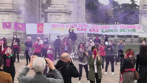 Women from Non Una di Meno in Darmstadt and Milan protested the withdrawal of the Turkish state from the Istanbul Convention.